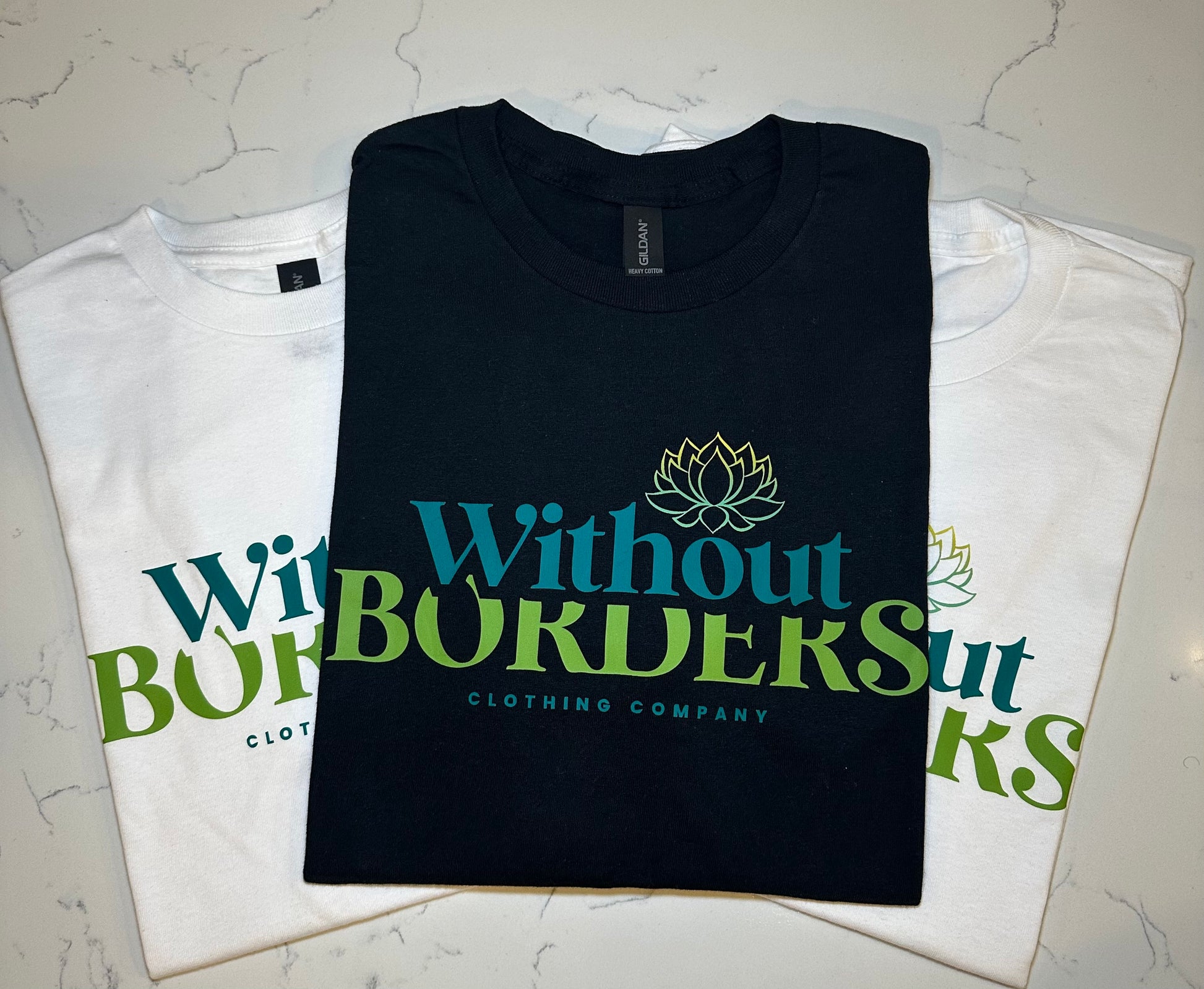 Our Black Heavy Cotton T-Shirt with Signature Color Without Borders Logo